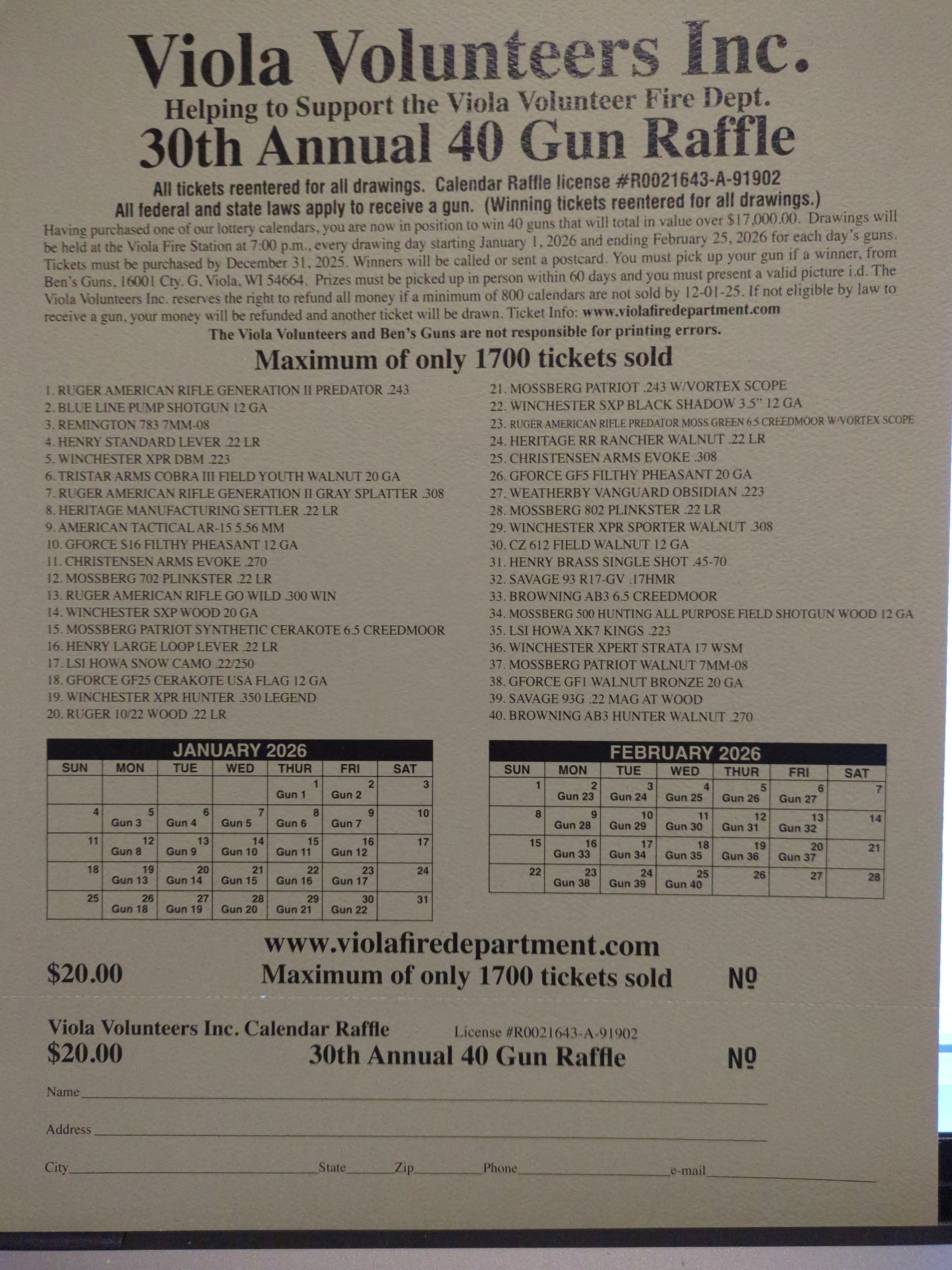 30th Annual Viola Fire Department Gun Raffle